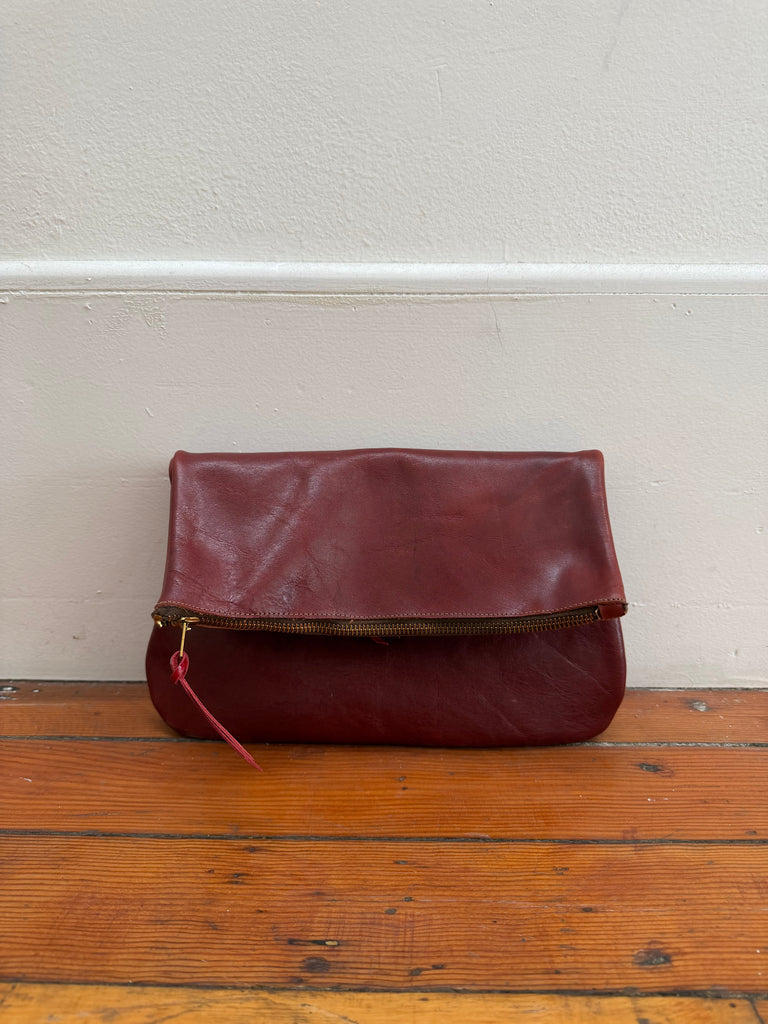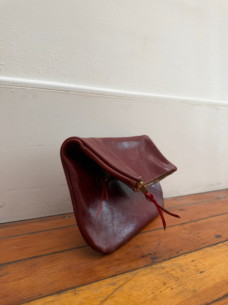 A new take on my classic envelope pouch for day or evening. Made in oxblood color veg tan leather