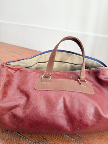 Made from a sturdy oxblood oil tan, lined in a heavy cotton with zip pocket for additional storagfe