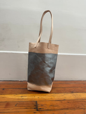 Made in saddle veg tan with pewter metallic. I call this skin a canvas because it is clean untreated and not dyed. Over time it will darken and patina, making it unique to you.